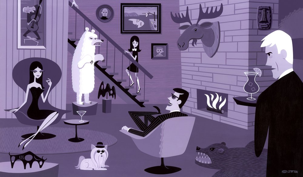 Josh Agle is an active participant in group art shows and frequently supports local Palm Springs events in addition to many international mid-century, low-brow, tiki, or advertising themed shows. It is hard at times to categorize his style but there can be no argument that he is extremely talented and his work is very popular.