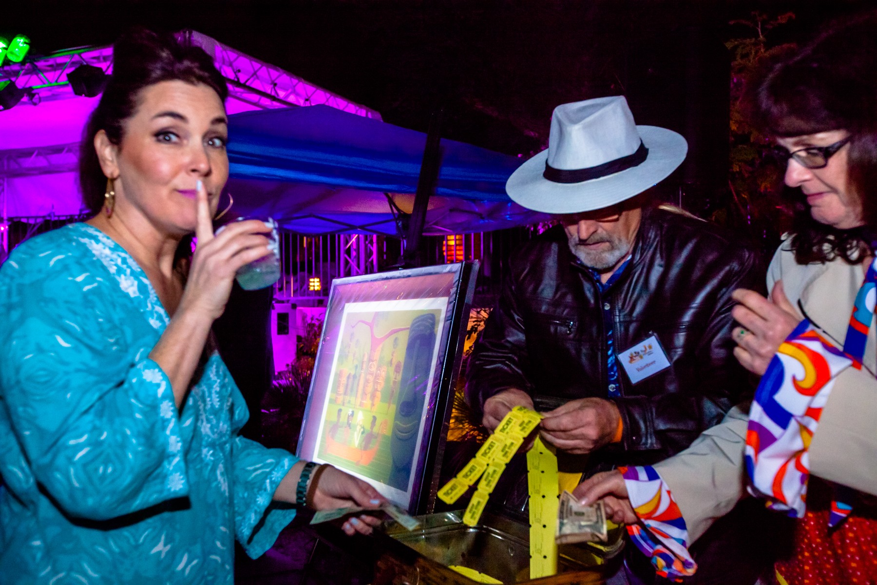 Tiki-A-Go-Go was a Tiki Caliente 9 party hosted by the Royal Hawaiian Estates Homeowners from 6pm-9pm on Saturday 18th February 2017. The event included music from DJ Baz and a live performance from The Hula Girls. Shag donated an In Search of Tiki sixteen-color limited-edition serigraph print from 2008 to the charity raffle in aid of restoration of the Royal Hawaiian Estates historic district.