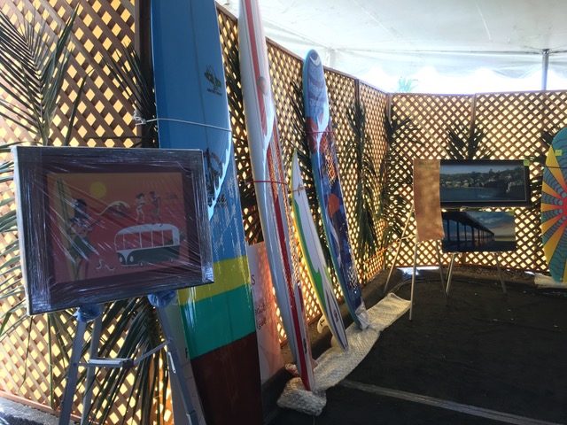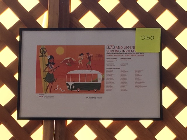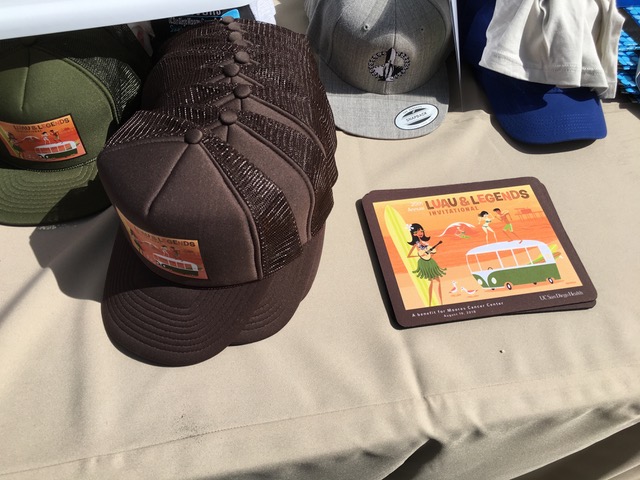 The 25th Annual Luau and Legends of Surfing Invitational was held at Scripps Pier in La Jolla, California on August the 19th 2018 with Josh Agle as the official event artist. This charity event for the Moores Cancer Center began at 7am with a surfing tournament followed by a Luau at 11am. The auction included the original Shag painting “La Jolla Beach Party” and an event print of the painting and schedule. The Shag merchandise also included Alhoa Shirts (US$125), T-Shirts (US$20), Youth Tee (US$15), Hoodie (US$40), Hats (US$20), PopSockets (US$10), Mousemat ($5) and a 15oz mug (US$10).