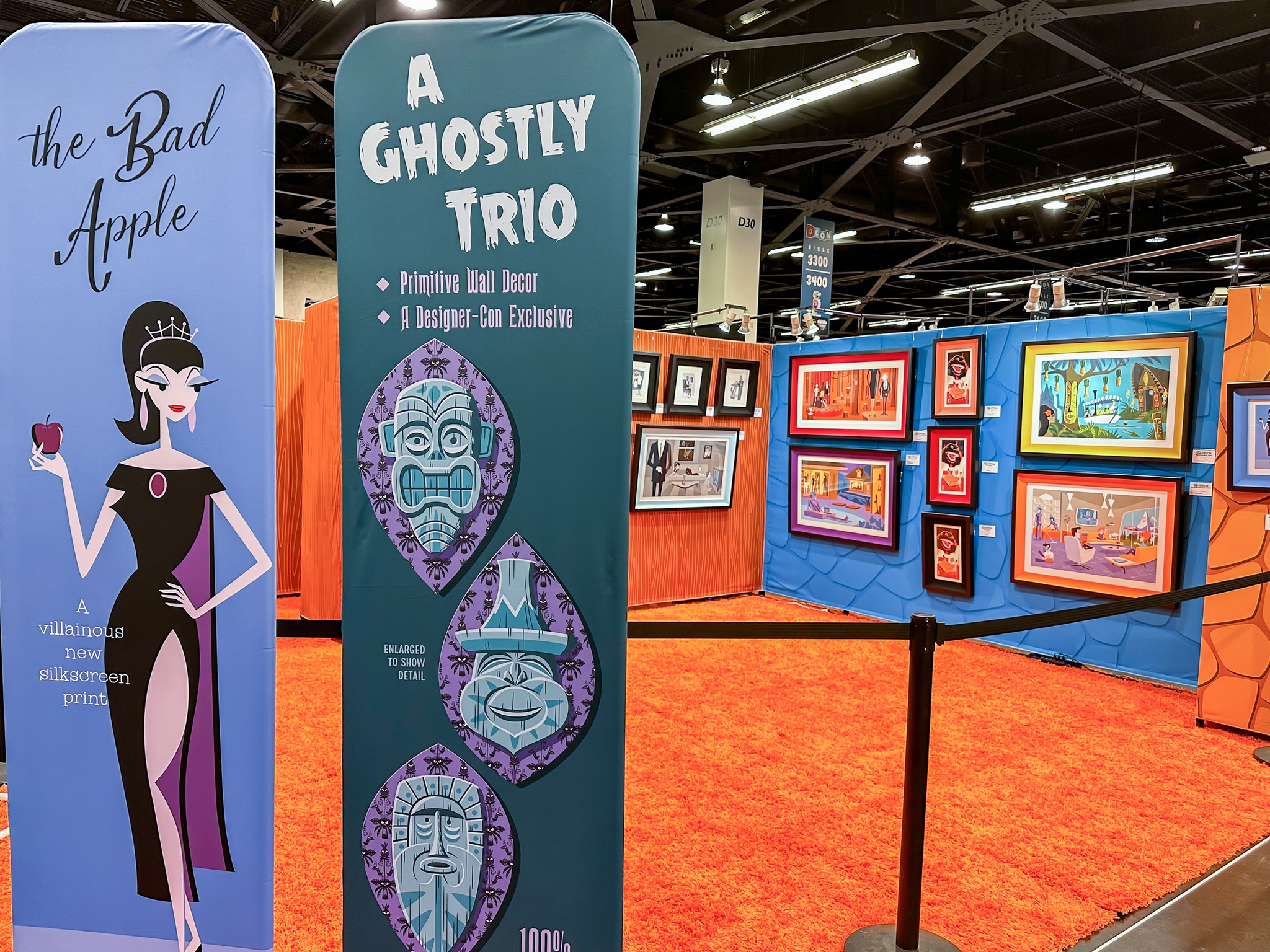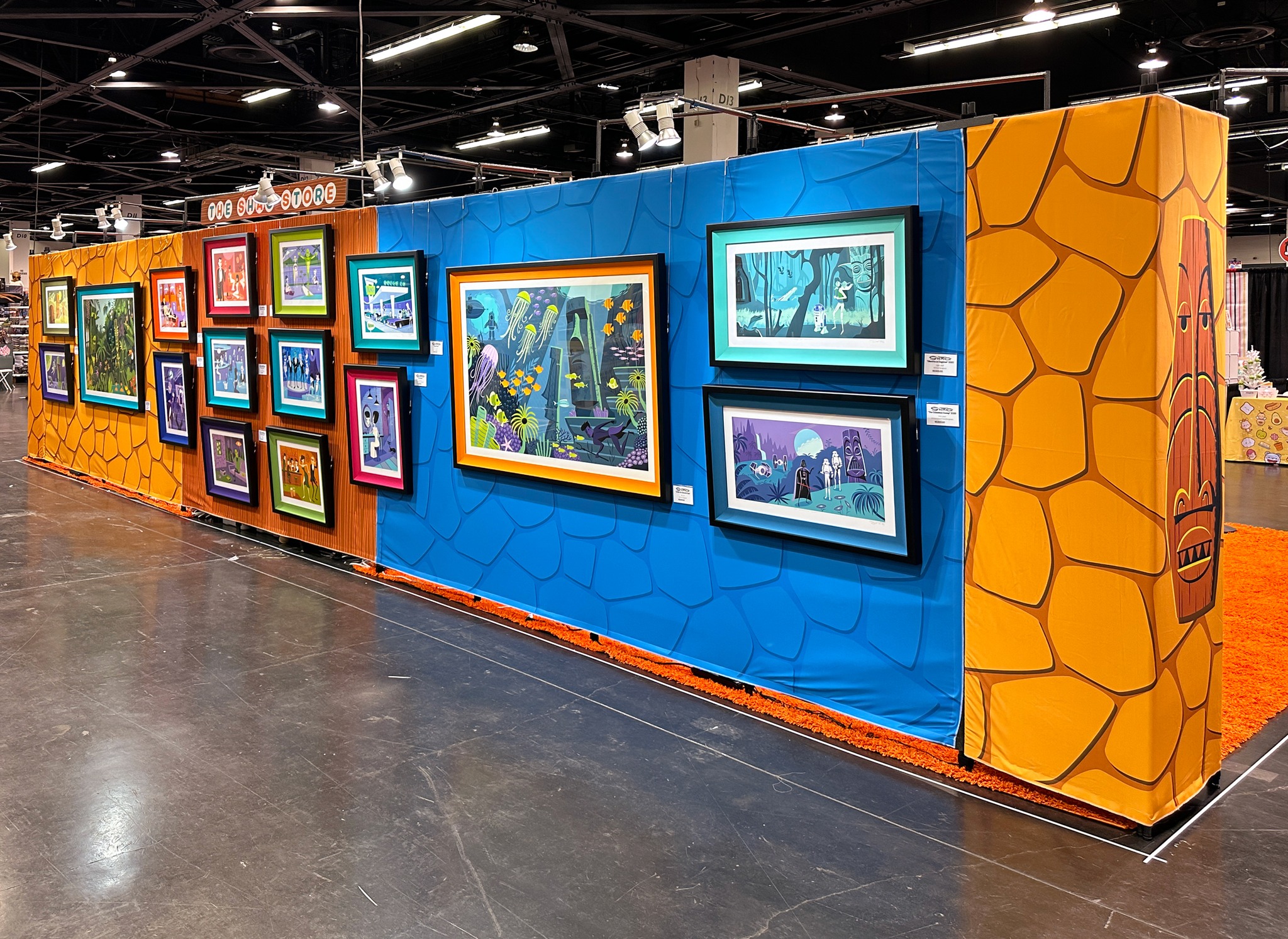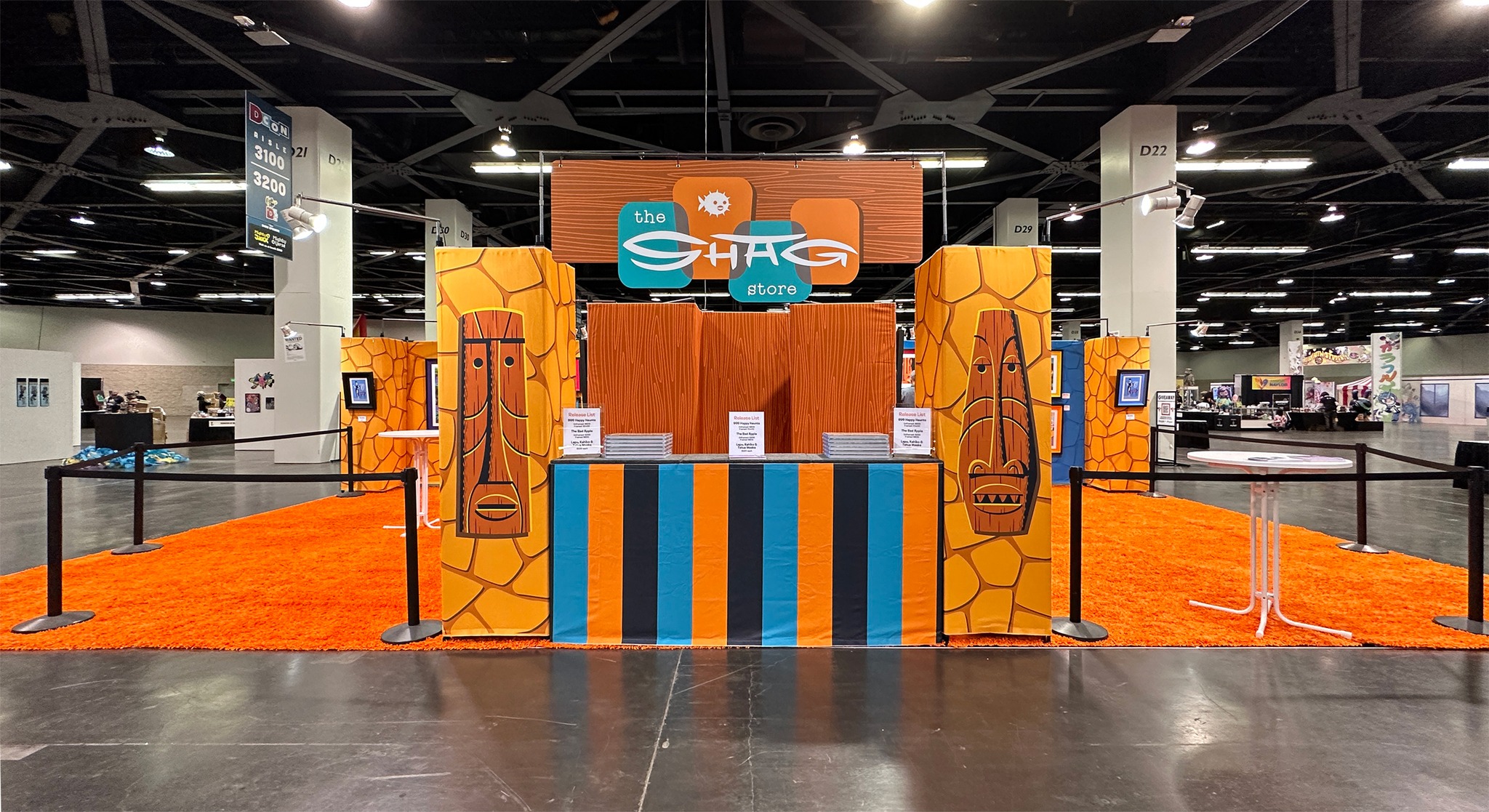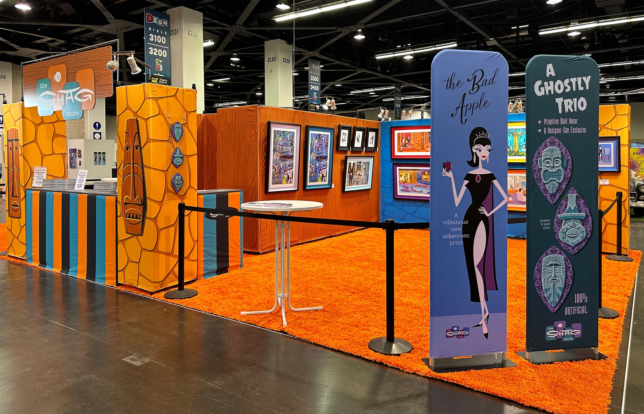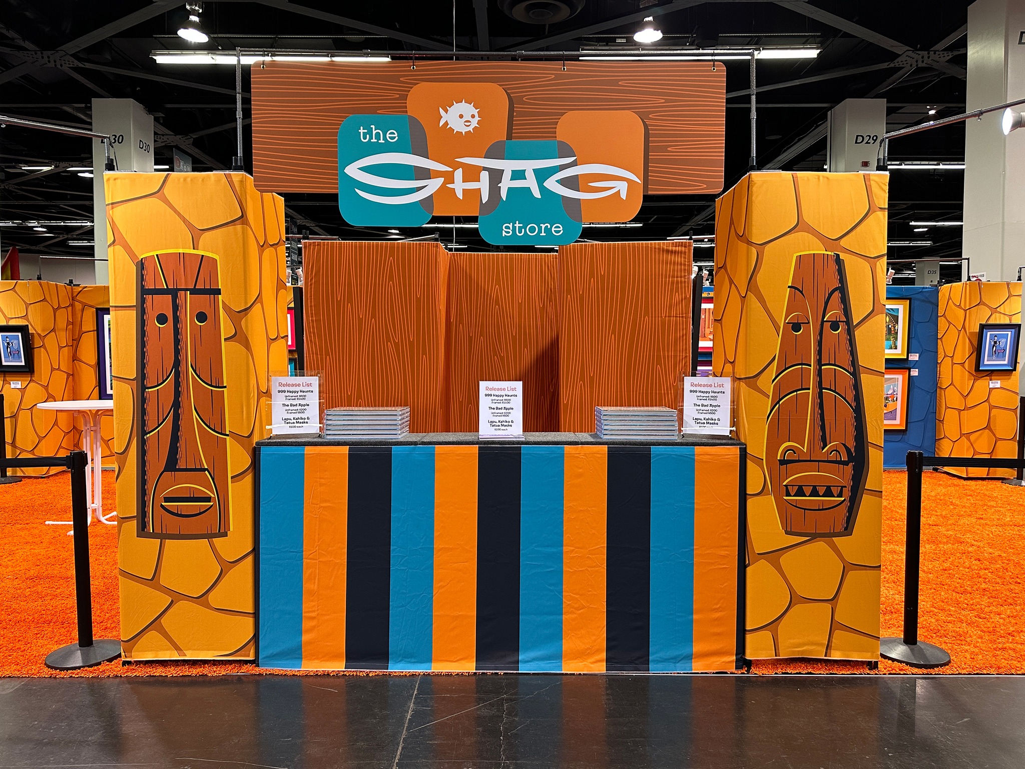 DesignCon was held on November 18-20 2022 at the Anaheim convention center in California with the Shag Store at booth 3022. The event featured the releases of Kahiko, Lapu & Tutua wall masks, The Bad Apple print, the 999 Happy Haunts print (blue ghost variant) and the BE@RBRICK ARTIST series 4 five-pack. Shag was present at the Shag Store booth to sign items from 7-8 pm on the 18th, 1-2 pm on the 19th and 1-2 pm on the 20th, plus 5-6 pm on the 19th at the Medicom Toy Booth for the new Be@rbricks.