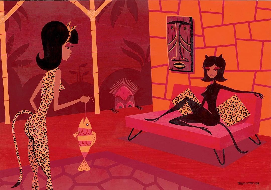 Tiki Caliente 13 is held on 12-15 May 2022 at the Caliente Tropics Resort in Palm Springs in California. The Shag Store is a sponsor for the event and Sahg is present at an Exotica Moderne magazine signing on Saturday, May 14th. The prints Dark Idol and Clam Digger were released at the event.
