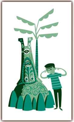 Size: 20.3 x 35.6 cm Original Cost: US$125 (US$200 for AP) 3 color serigraph. “There are seven talking Tikis in the Courtyard of Walt Disney’s Enchanted Tiki Room at Disneyland. I was inspired by watching the kids react to the Tikis and tried to give each child and Tiki in the paintings a distinct personality. “ |