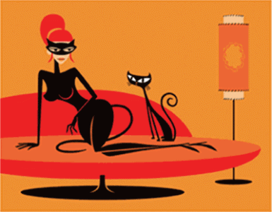 Size: 17″ x 14″ Original Cost $150 USD (or $275 when purchased with Black Kitten in Green) 7 color serigraph. From the Animal Kingdom show at the Corey Helford Gallery. Original top right, print bottom right. “It’s midnight. She has been waiting for her lover to arrive since 7:00. Even if he doesn’t get there until 1:00 am, the wait will be worth it. He’s getting takeout at Umami.” |